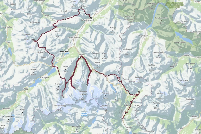 Vom Albulatal mit dem Piz Kesch und der UNESCO Welterbestrecke der Rhätischen Bahn (von Thusis bis Tirano), ins Juliergebiet mit seiner eindrücklichen Geologie und Ruhe, weiter zum Berninagebiet mit den bekannten Grössen wie Piz Palü, Piz Moteratsch und Piz Bernina samt dem weltbekannten Biancograt und den Schluss bildet das liebliche und warme Puschlav mit seiner unvergleichlichen Italianità. Da ist für jede und jeden etwas dabei!
