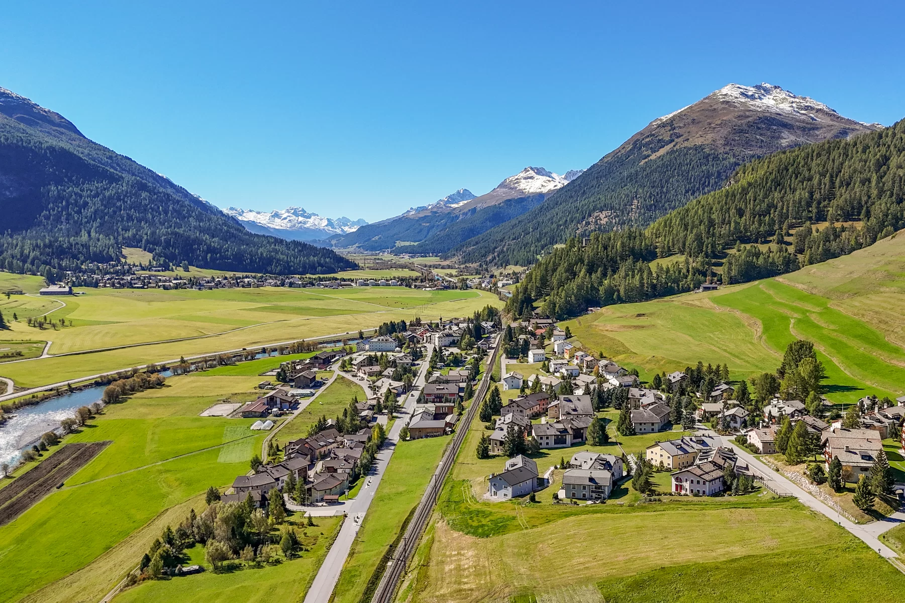 Der erste Tag beginnt mit der Anreise ins Oberengadin. Der Aufstieg ab Madulain ist daher etwas kürzer als die folgenden Tagesetappen. Wenige Meter südlich vom Bahnhof Madulain, (Anreise per Bahn empfohlen) führt eine Strasse über die Bahngeleise bergwärts. Vorbei an einem modernen Bauernhof und man hat bereits die letzten Häuser des kleinen Dorfes verlassen. Vor Erreichen einer Schlucht dreht der Weg nach rechts in sonnige, terrassierte Hänge. Der Weg ist gut mit Wegweisern beschriftet und führt vorbei an der Alp Es-cha Dadour.