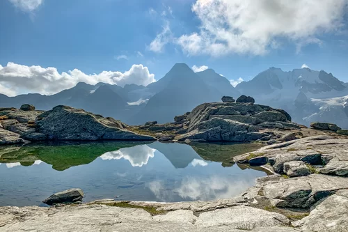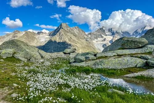 Markante Übergänge, alpine Umgebung in Gletschernähe, Aussicht ins Hochtal Engadin und auf bekannte Bergketten (Bernina, Roseg, Julier), Steinwild, Murmeltiere, Bartgeier, Adler und beeindruckende Geologie