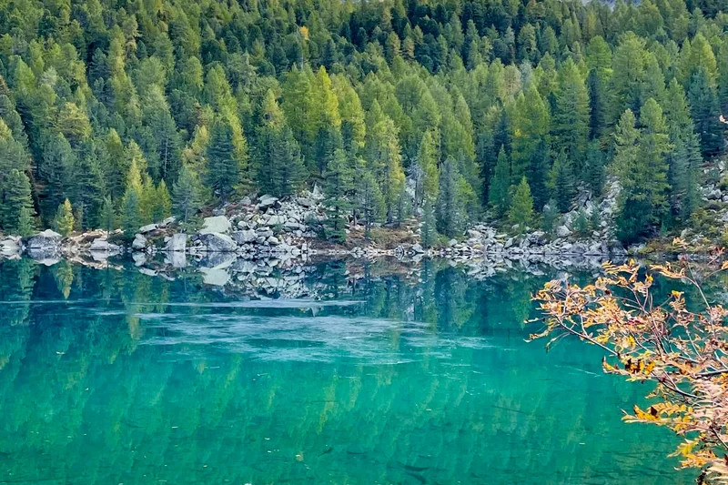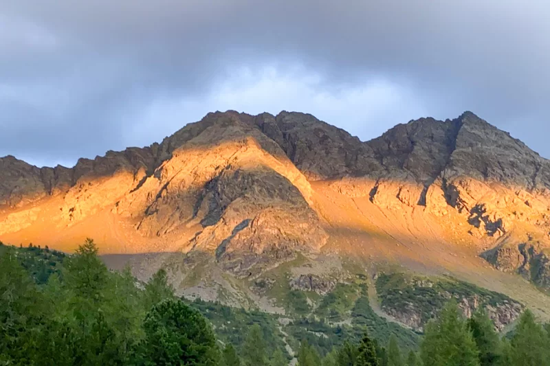 «Wirklichkeit oder Traum? Nebel steigen auf, der Saoseo See liegt spiegelglatt im lichten Wald. Zum Greifen nahe glitzert der Palü-Gletscher, das Gelb der Lärchen mischt sich mit dem unendlichen Blau des Himmels. Zackige Felsgrate, sanfte Gletscher und stolze Gipfel locken. Herb schmeckende Pilze und saftig blaue Heidelbeeren lassen das Wasser im Mund zusammenlaufen. Ein Tag im Paradies. Und morgen folgt der nächste.»